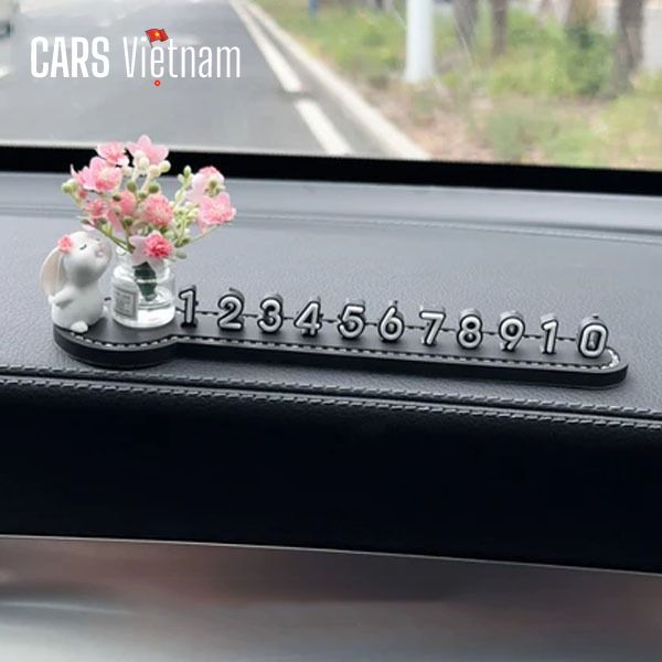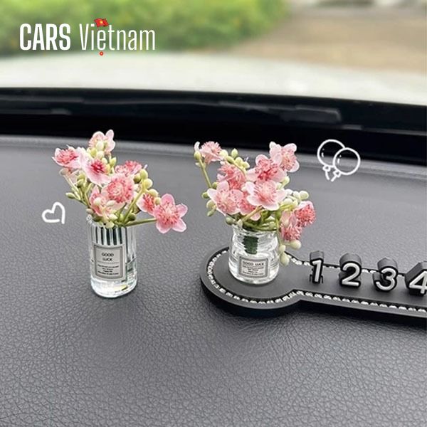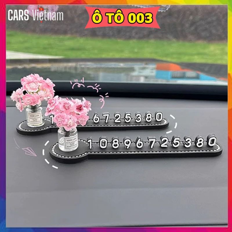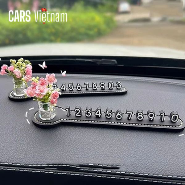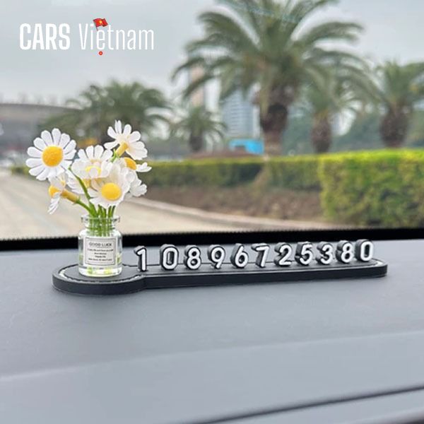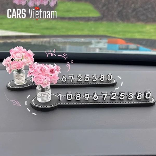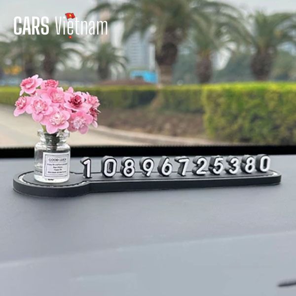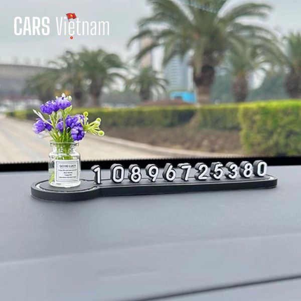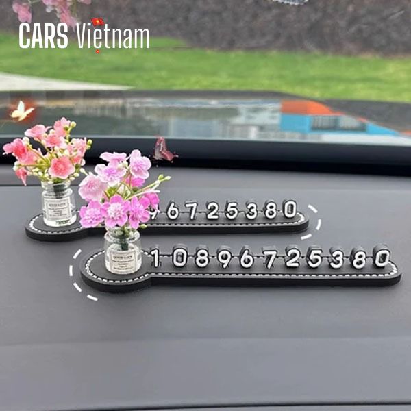 Bảng số điện thoại đỗ xe,bảng số đứng mix cùng lọ hoa mini siêu xinh gắn taplo xe ô tô, xe hơi